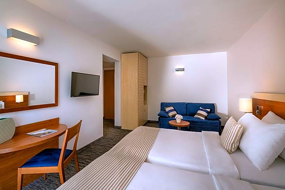 This air-conditioned room is located in Valamar Casa Sanfior and comes with a flat-screen satellite TV, a safe and a mini-bar. A private bathroom is equipped with a shower or a bathtub, a hairdryer and free toiletries.